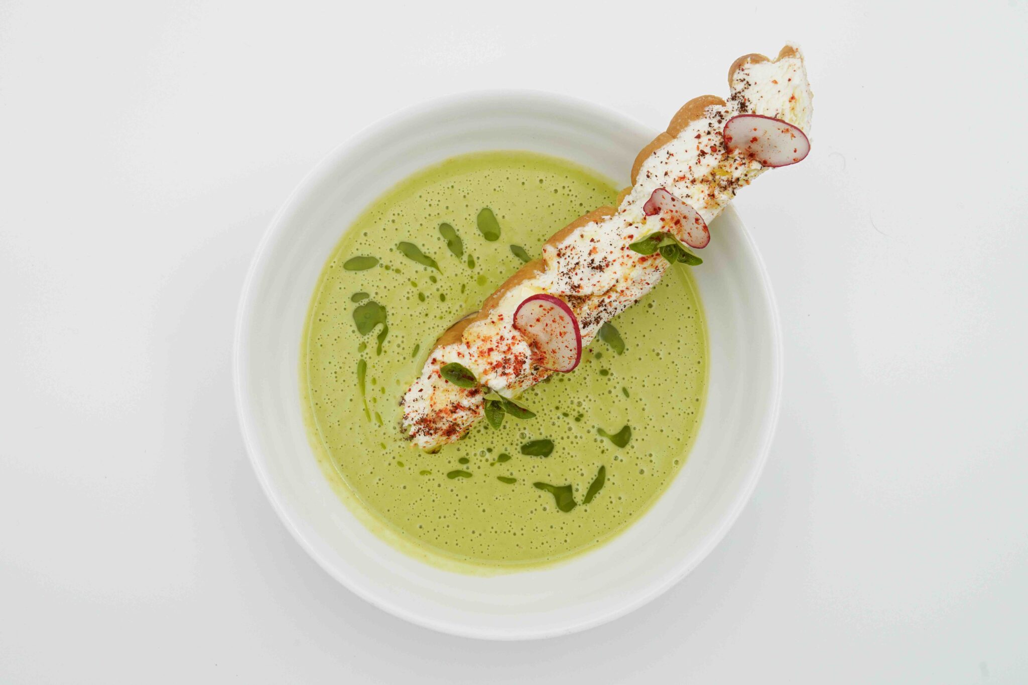 - Flan di piselli con shiitake saltati e pesto di ortiche di Corippo, crema di Sbrinz stagionato 48 mesi